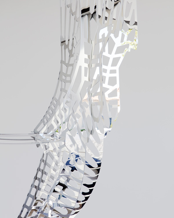 Ghost Pearls is an architectural sculpture that explores spaces of connection and mediation. The work is based on research into local and historical forms of lace-making, early digital art, and contemporary virtual space.